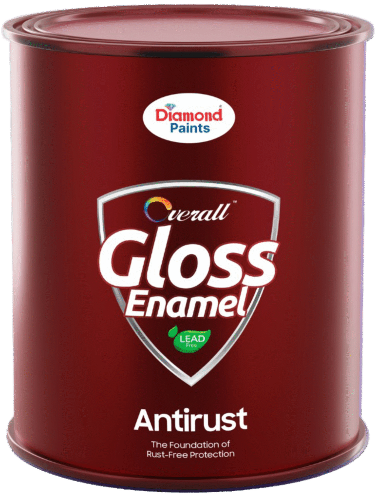 Diamond Overall High Gloss Enamel is a durable oil-based paint with a mirror-like finish, great for both indoor and outdoor use.